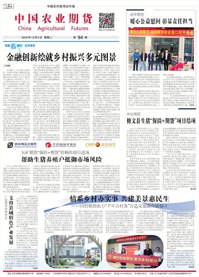 未来,随着期货品种的持续丰富、服务模式的不断创新,相信会有更多期货机构立足乡村产业实际,精准对接需求,通过“保险+期货”、产业赋能、民生帮扶等多元举措,将专业金融力量转化为乡村振兴的实际成效。期货行业也将继续以专业优势深耕实体经济,在保障农户收益、稳定产业发展、助力县域经济提质等方面发挥更大作用,为绘就乡村全面振兴的壮美画卷、推动农业农村现代化建设贡献持久的期货力量。